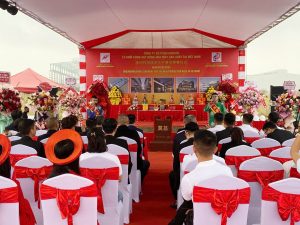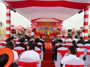 lễ khởi công nhà máy, tổ chức lễ khởi công, thi công sân khấu lễ khởi công, cho thuê thiết bị sự kiện tại Hải Phòng, tổ chức lễ động thổ nhà máy, Kinh Bắc Media